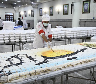 تهیه وآماده سازی کیک یک کیلومتری بمناسبت ایام ولادت حضرت عبدالعظیم(ع)/عکاس: علیرضا نادری