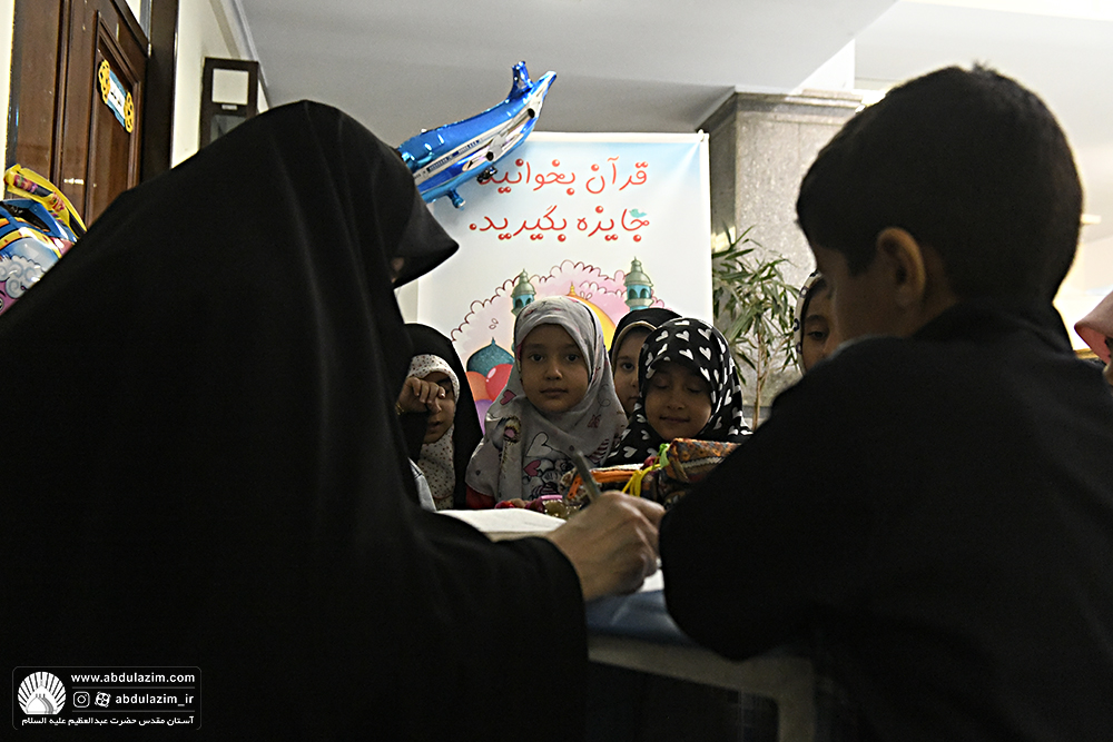 غرفه فرهنگی کودکان (قرآن بخوانید جایزه بگیرید) در ایام ولادت حضرت عبدالعظیم (ع)/عکاس :مصطفی محمدی