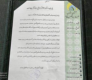 Staff and students of Quran learning Center of Holy...Celebration on the Eid –e-Mab'as", the celebration of...Celebrating the Anniversary Birth of Imam Mahdi (as) with...Federal Republic of Germany's Ambassador in Iran Visited...Pilgrimage and visit Mrs. Hanan ِDavar, Australian...Public visiting of work shop of new shrine of HAZRAT...Noble Qurans Tartil Reading Ceremony in Holy Shrine of...Lifestyle educational class with the subject of "Family...Presence of AYATOLAH Seyed Mohamad Saedi the trusteeship...Foreign Pilgrims Donations
