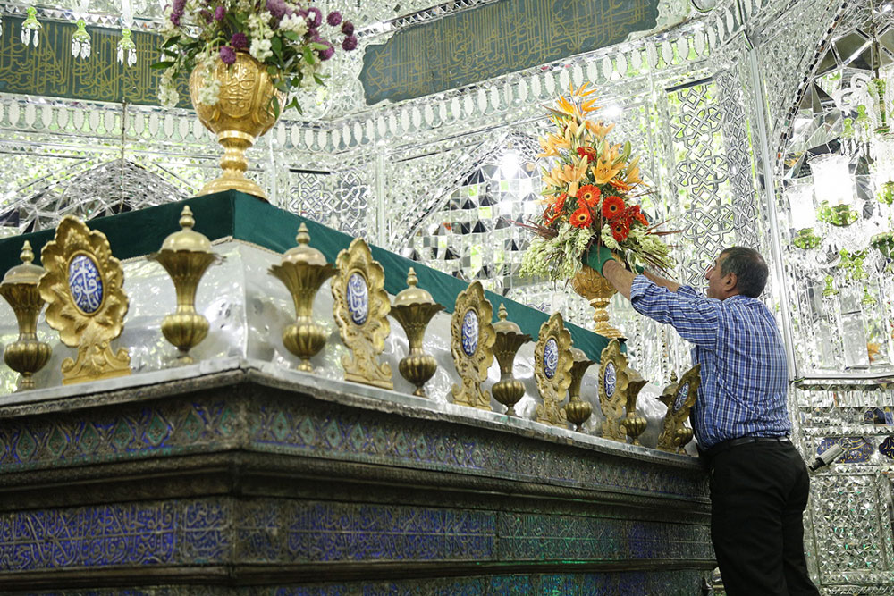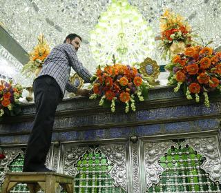 گل آرایی ضریح مطهر حضرت عبدالعظیم حسنی(ع) / عکس: محمود رحیمی