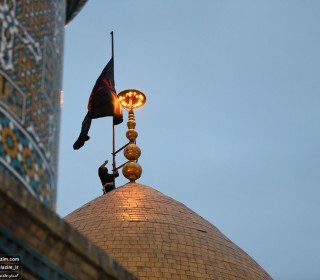 اهتزاز پرچم متبرک گنبد امام حسین(ع) بر فراز گنبد حضرت عبدالعظیم (ع) در شب اول...