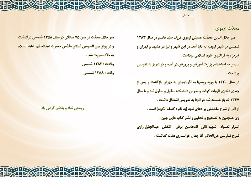 ب ـ آثارى كه با تحقيق و تصحيح و حواشى و مقدمه محدث ارموى به چاپ رسيده است: