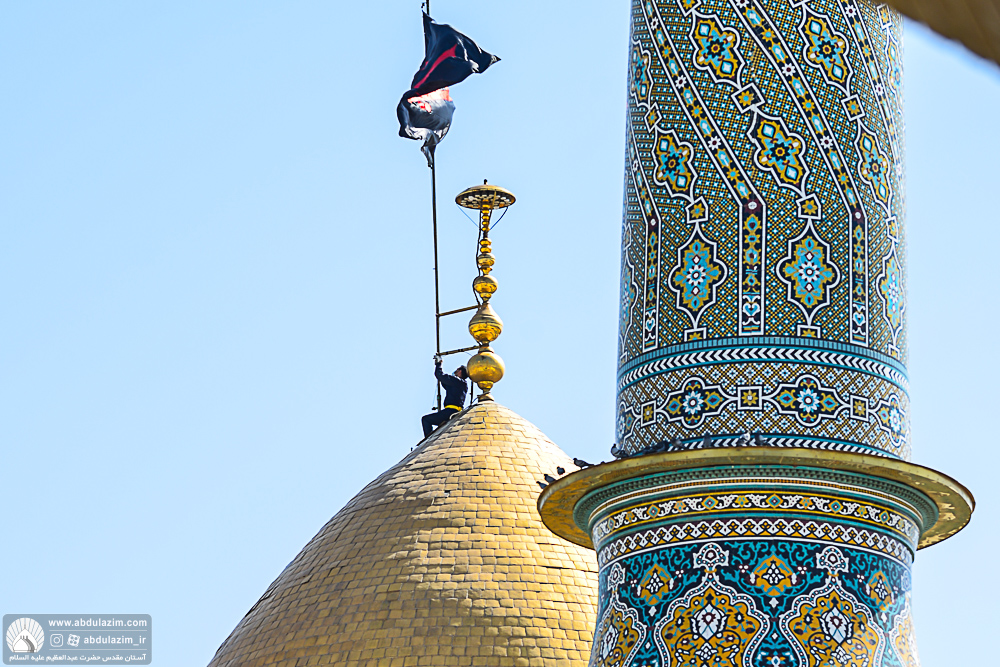 9555--عکس۱۳۹۹/۰۳/۱۸اهتزاز پرچم عزا بر فراز گنبد به مناسبت وفات حضرت عبدالعظیم حسنی(ع) / عکس: اسدی